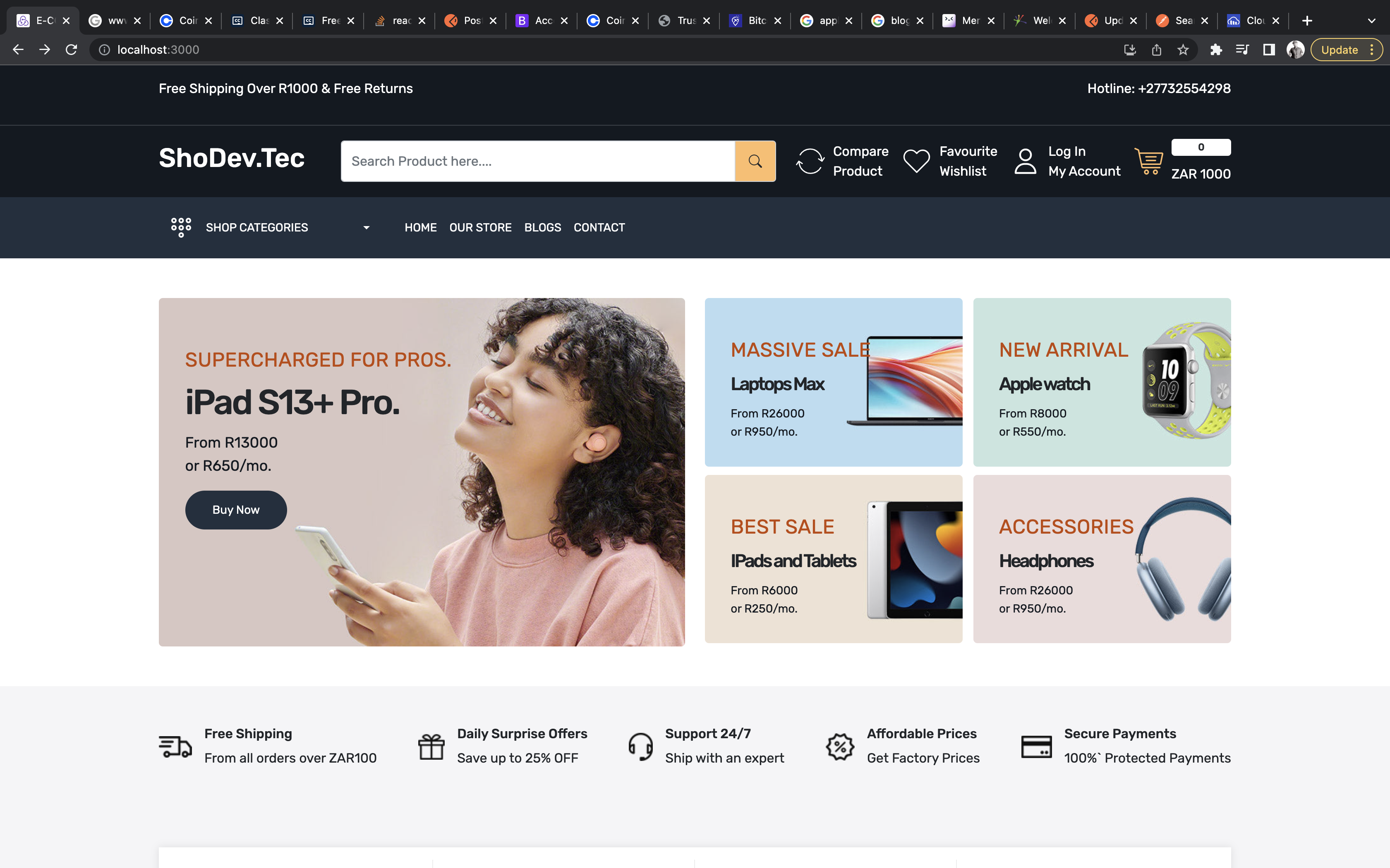Our eCommerce website has been meticulously developed with React, a robust and efficient framework. This ensures that every aspect of your shopping journey is smooth and intuitive, allowing you to browse, search, and purchase products with ease. With React's component-based architecture, we have created a highly responsive and interactive platform that adapts seamlessly to different screen sizes and devices.
